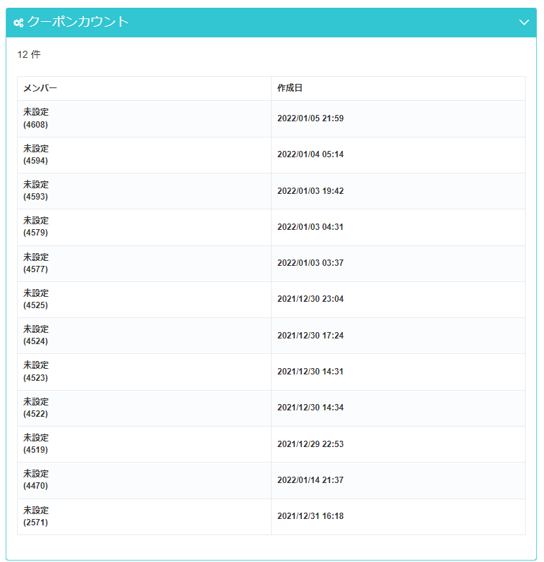 | メンバー | クーポンを利用したユーザーID |