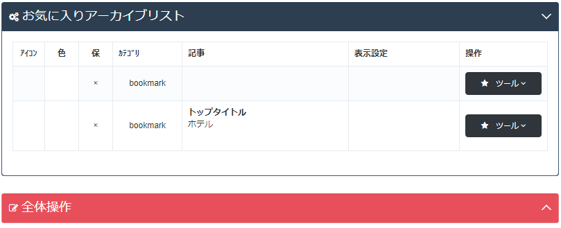 | 操作 | 「ツール」による記事の操作ボタン |