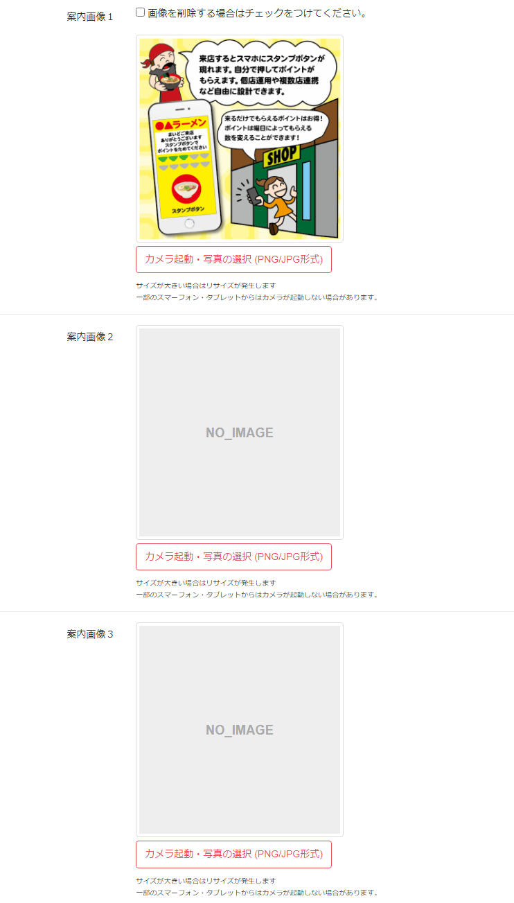 | 案内画像1~3 | ポイント案内に表示する案内画像 (最大3枚) |