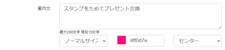 案内文は来店ポイントの交換方法などの案内を設定します。