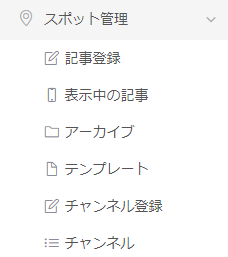 メニュー「スポット管理」をクリックするとサブメニューが表示されます。