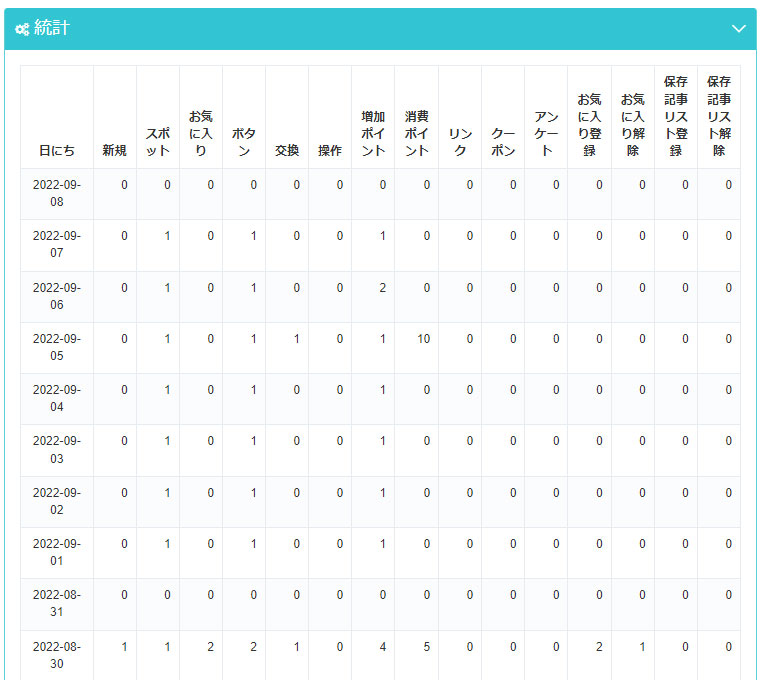 管理画面にて来店ポイントを操作した回数