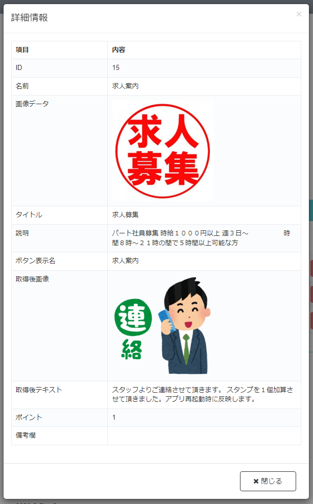 | ポイント | アンケート回答時に付与する来店ポイント数 |