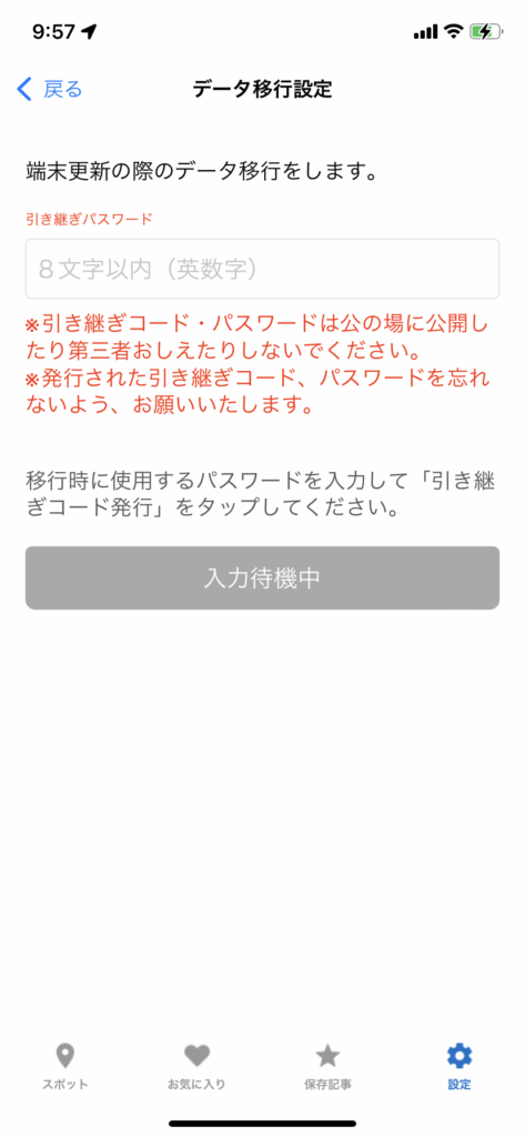 利用者が機種交換する際に利用します。機種交換前に事前に引継ぎ設定を行うことで交換後にプレイGOのデータを移行することができます。