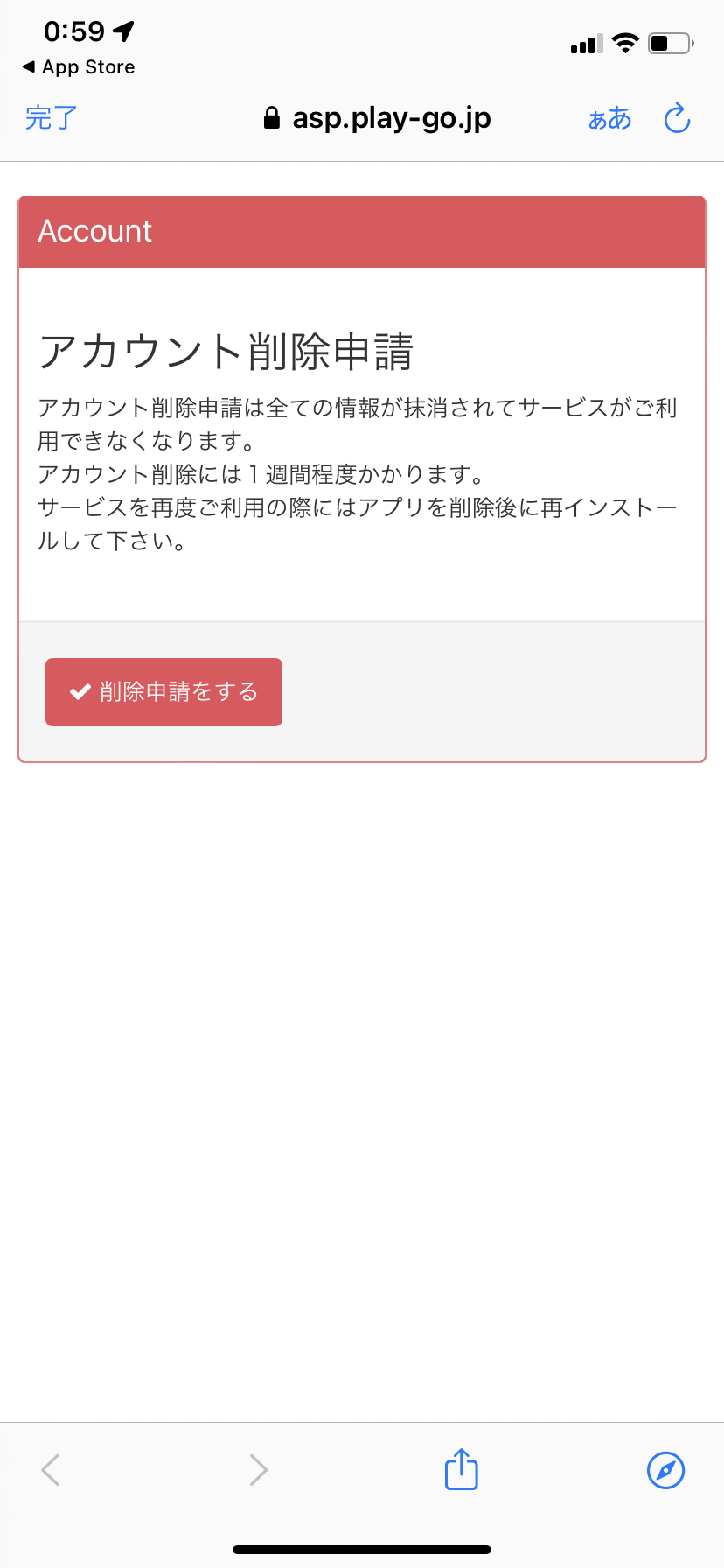 アカウントの削除申請を行うと弊社で確認後、プレイGOサービスより該当のユーザーIDを完全に削除します。