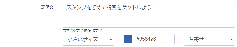 スポットページに表示するスタンプラリーの説明文を設定します。