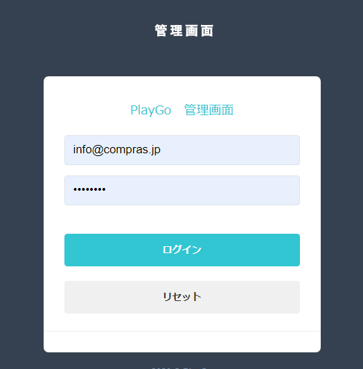 ビーコンが反応することを確認したらプレイGO管理画面にログインできることを確認してください。